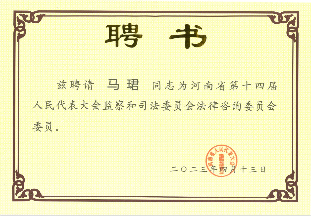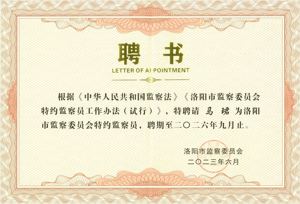 近日,副校长马珺被河南省人民代表大会监察和司法委员会聘为“法律咨询委员会委员”,被洛阳市监察委员会聘为“特约监察员”。