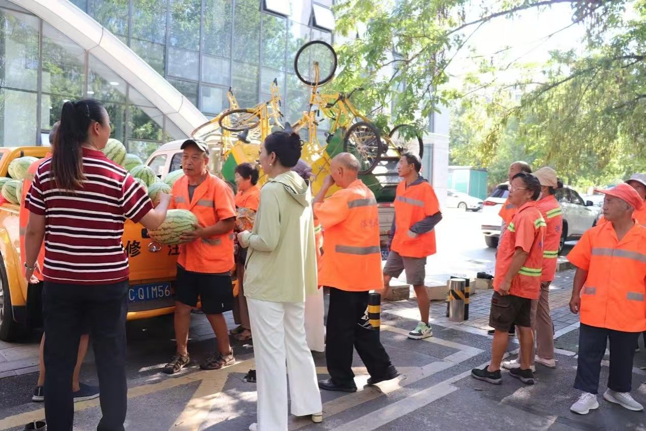 支部会同民革洛阳市委会、洛阳暖鑫热力有限公司组织垃圾清运车15辆、西瓜2400多斤到洛阳市洛龙区城管局环卫大队举行“夏日暖阳·爱心传递”捐赠活动。