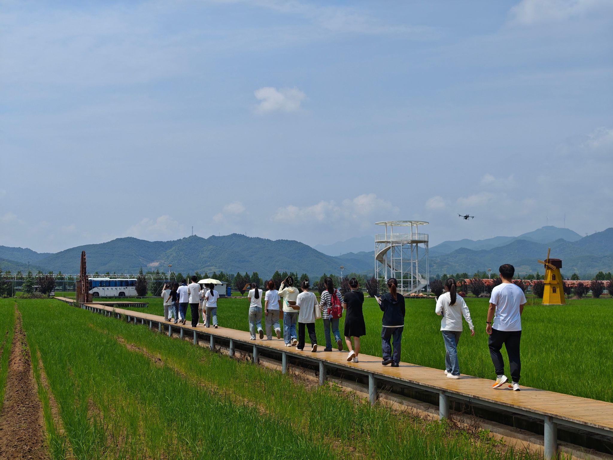 邓辰辉博士带领下前往东保村铸牢中华民族共同体意识主题展馆进行参观,重温在思政课上学习的铸牢中华民族共同体意识相关知识内容,深入了解东保村在民族团结进步、乡村振兴等领域的发展历程与突出成就。围绕三屯镇“同心圆·共发展” 促进乡村振兴工作实际情况,先后前往东保村扶贫车间—洛阳岛尚纺织科技有限公司、东保村稻田小镇“农业+文旅”生态循环农业综合体等开展深入调研。调研过程中,团队学生实地观察农村集体农业发展现状,体验数字化、科技化农业发展最新成果,深入了解三屯镇东保村“同心圆·共发展” 带动周边村落发展、提高村民收入的具体情况,团队学生还依据自身专业背景、思政课教学内容提出实际问题,围绕铸牢中华民族共同体意识、乡村老年人社会保障、乡村产业数字化运营管理、电商助农等主题与乡镇管理者、企业负责人进行深入探讨交流。