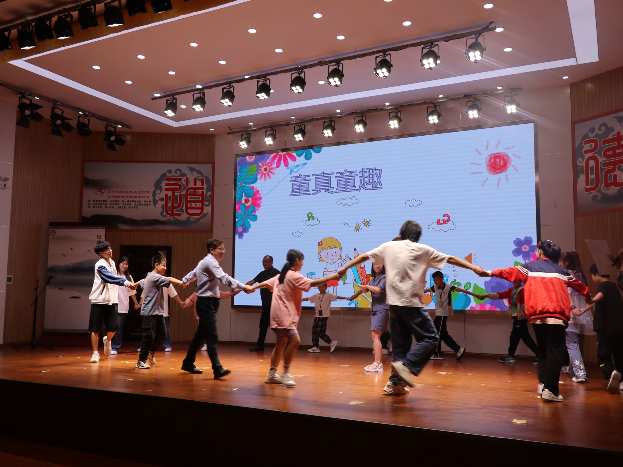 学生同台演出,带来了古筝独奏、陶笛齐奏、男女二重唱、民族舞、儿童故事汇等精彩表演,现场气氛热烈,掌声欢呼声不断。盟员与学生“爱的抱抱”的互动游戏,为活动现场营造了深深的关怀和暖暖的爱意。