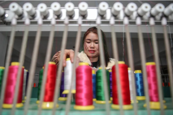 图为毕节市“绣娘”在统一战线帮扶成立的刺绣加工车间内工作。中央统战部供图