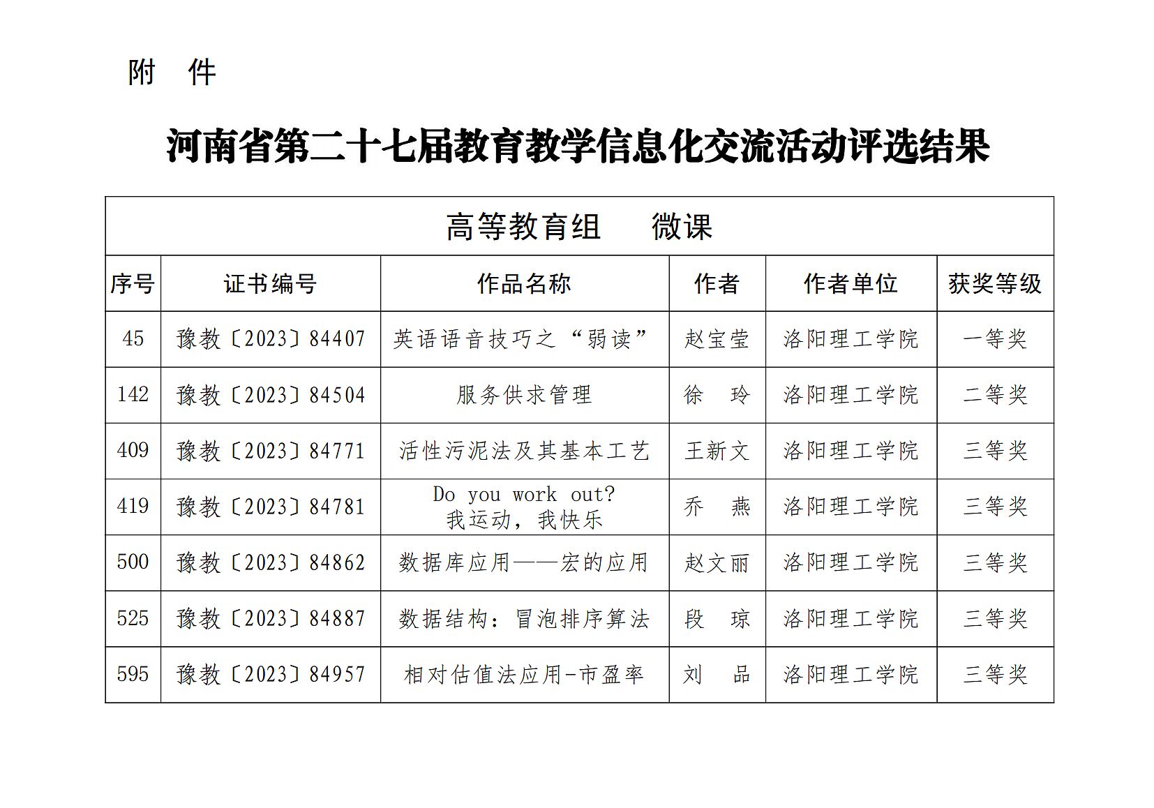报送的高等教育组微课作品荣获此次交流活动一等奖1项、二等奖1项、三等奖5项。