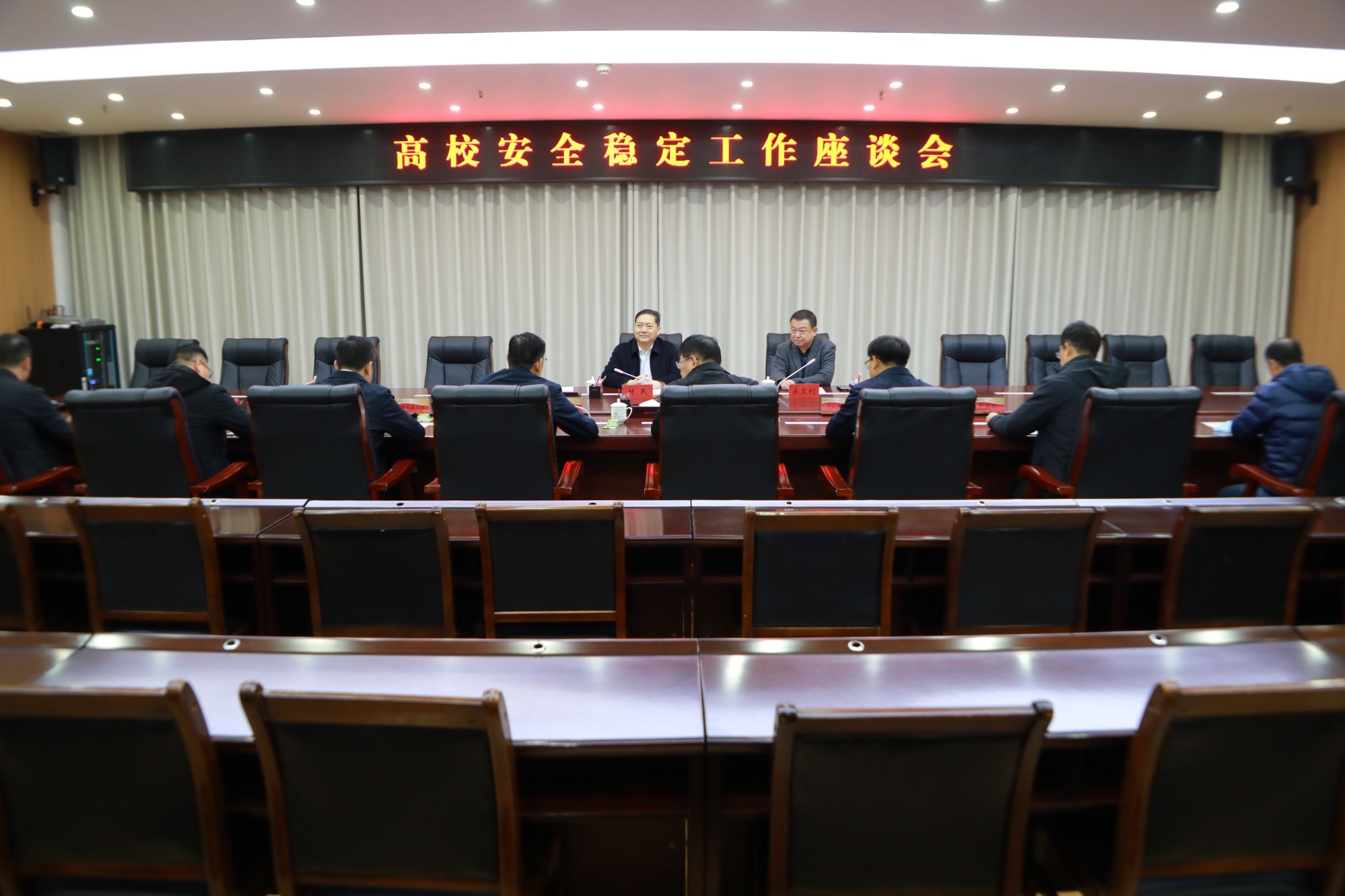 党政办公室、学生工作处、保卫处、后勤管理处等相关职能部门责任人参加座谈。座谈会由胡恩立主持。