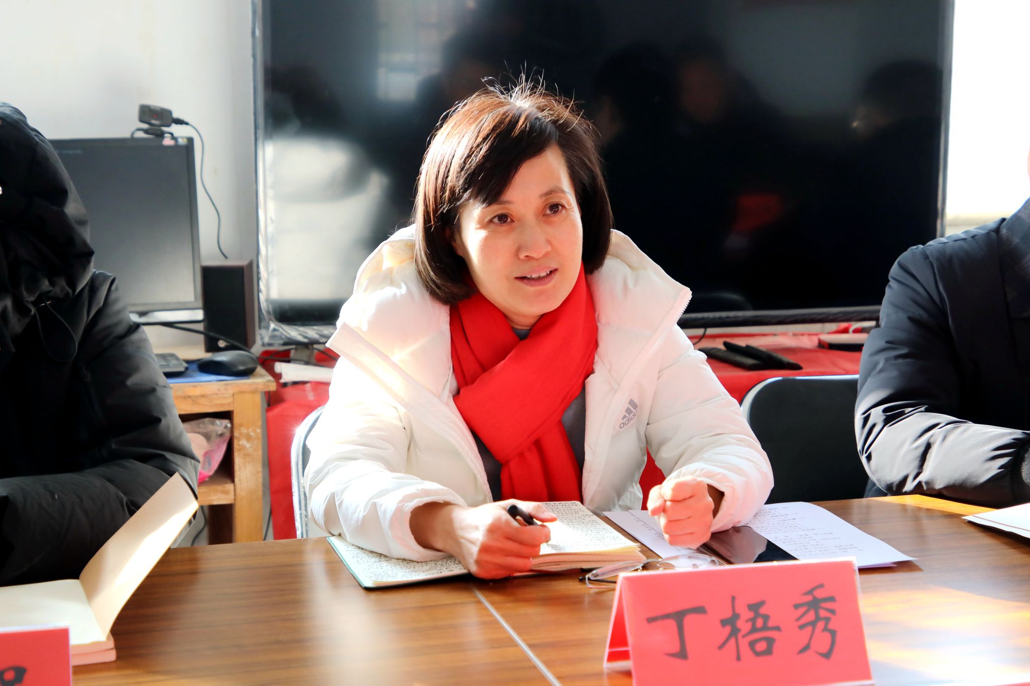 校长丁梧秀到五岳沟村调研指导定点帮扶工作,图为在五岳沟村支部会议室举行的调研座谈会。