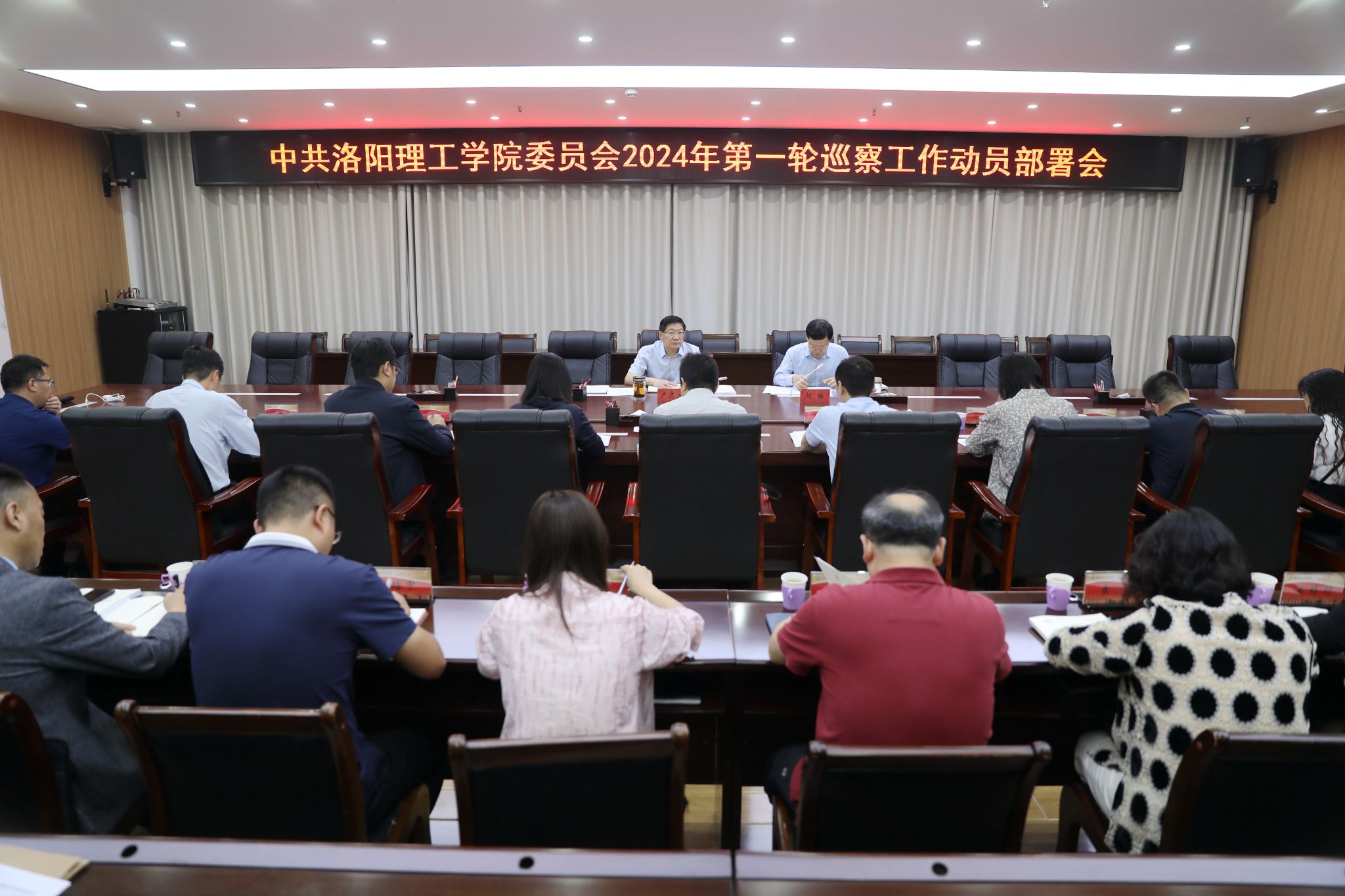 2024年第一轮巡察工作动员部署会在王城校区办公楼116会议室召开。党委书记、巡察工作领导小组组长卢志文,纪委书记、巡察工作领导小组副组长刘楠出席会议。党委各巡察组成员、被巡察党组织主要负责人、党委巡察办公室工作人员参加会议。会议由刘楠主持。