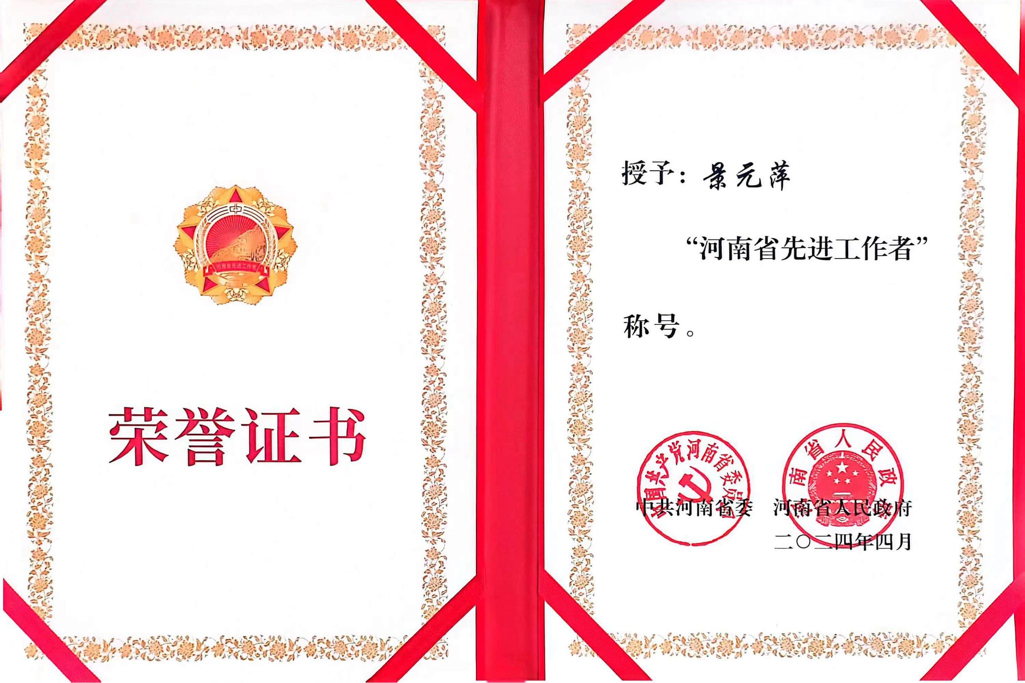 【喜报】美高梅娱乐场 景元萍老师荣获“河南省先进工作者”称号