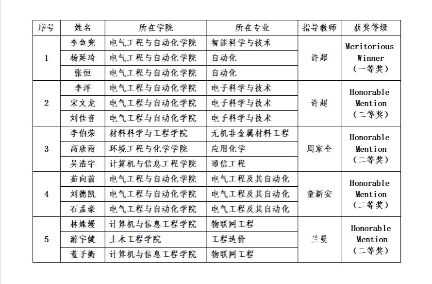 学子荣获Meritorious Winner奖(一等奖)1项、Honorable Mention奖(二等奖)4项,连续6年在该项赛事中获奖。
