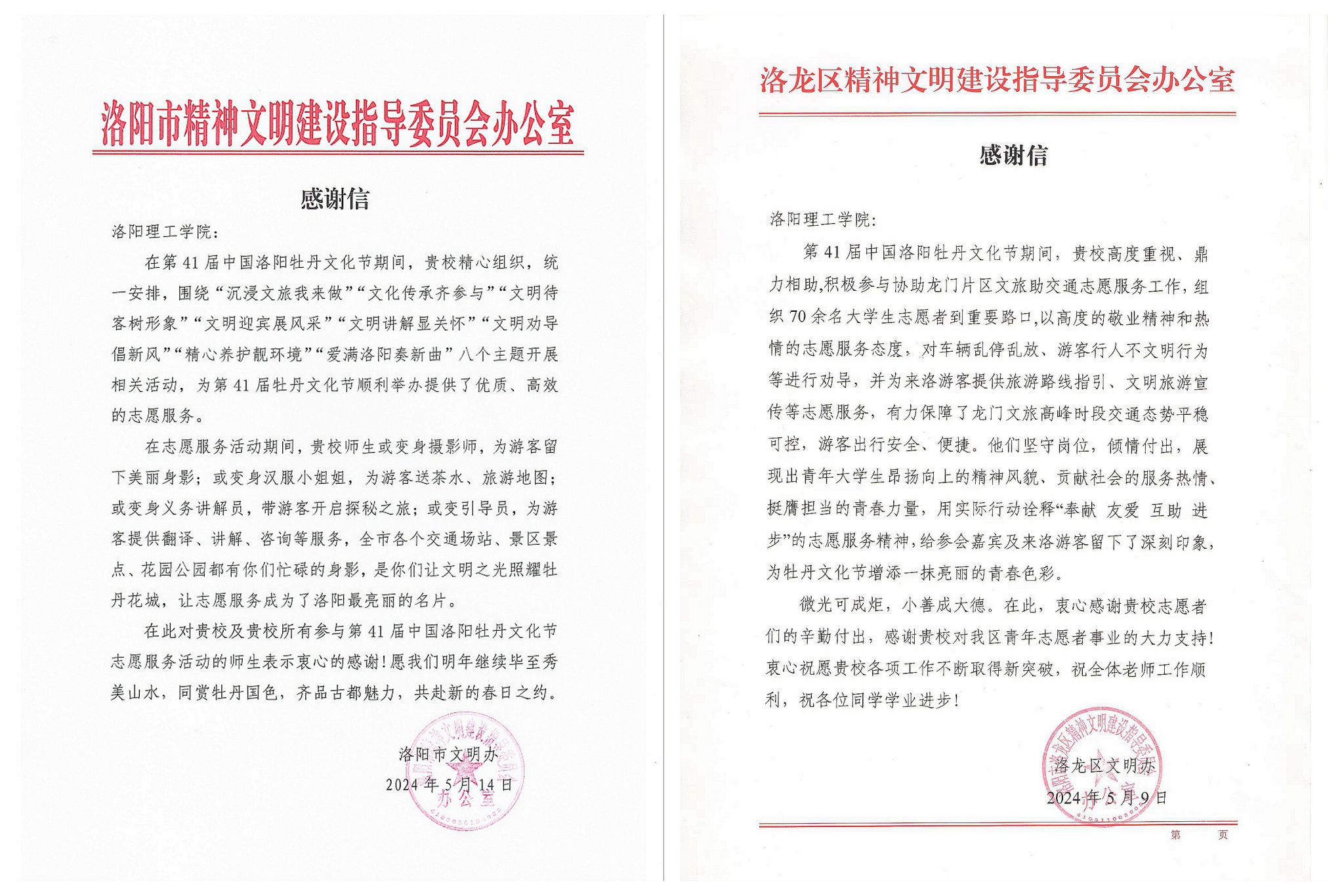 积极组织开展的中国洛阳第41届牡丹文化节各项志愿服务活动表示高度肯定,对美高梅娱乐场