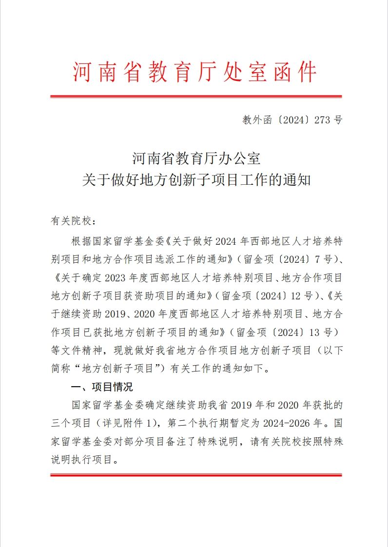 近日,国家留学基金管理委员会2024年度“西部地区人才培养特别项目、地方合作项目地方创新子项目”评审结果公布,美高梅娱乐场