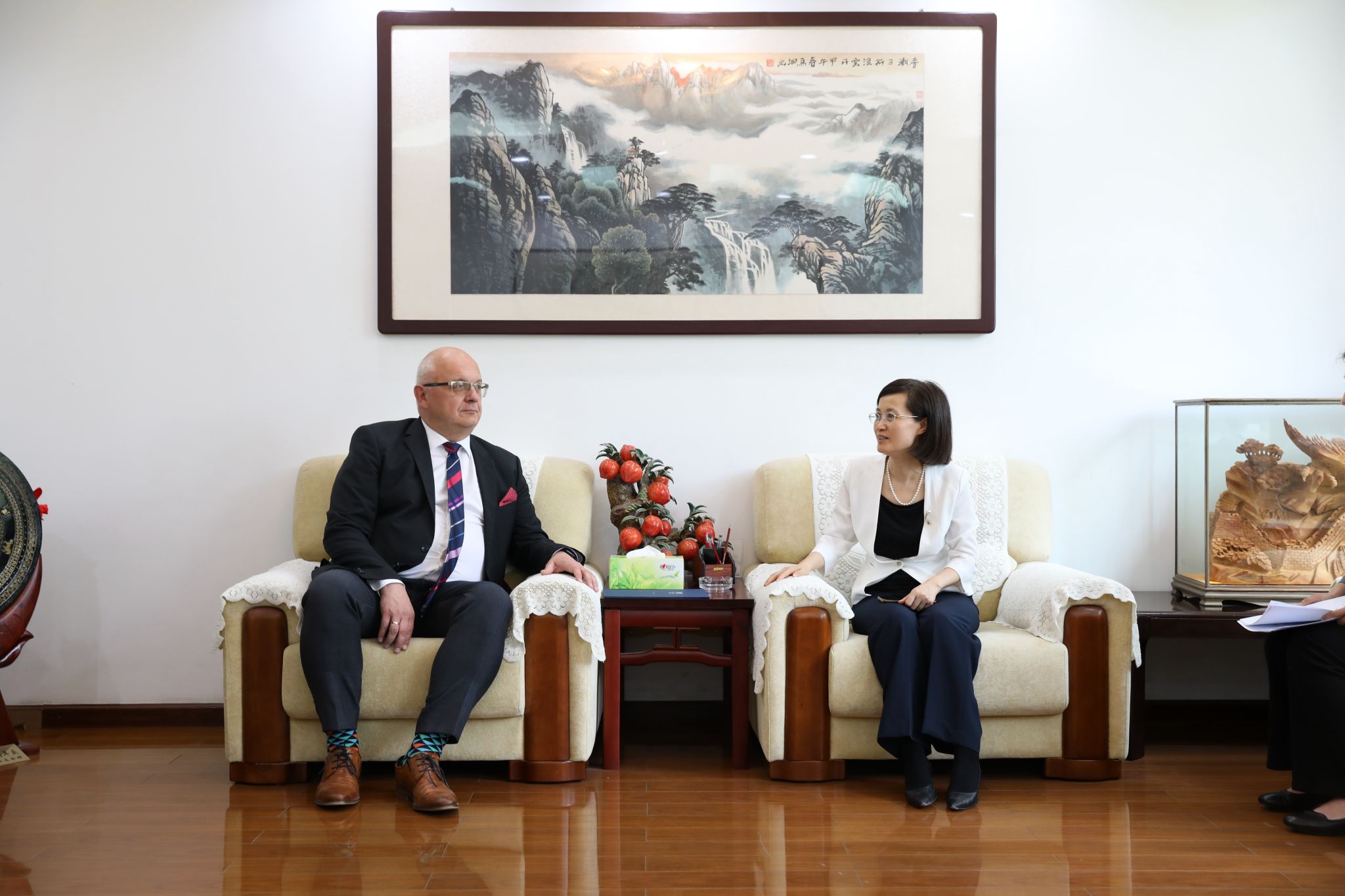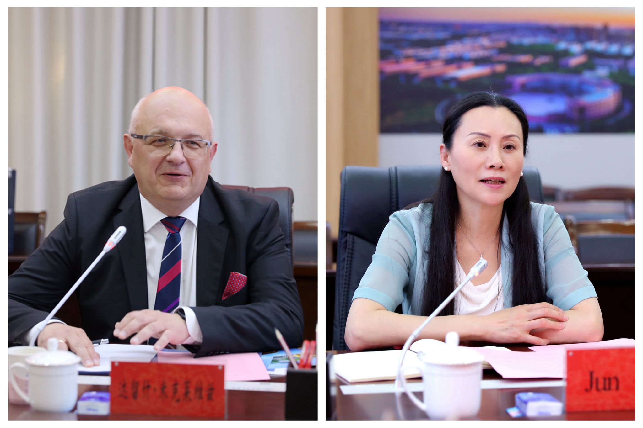 校长丁梧秀会见波兰格但斯克科技大学副校长达留什·米克莱维兹,双方进行亲切交谈。