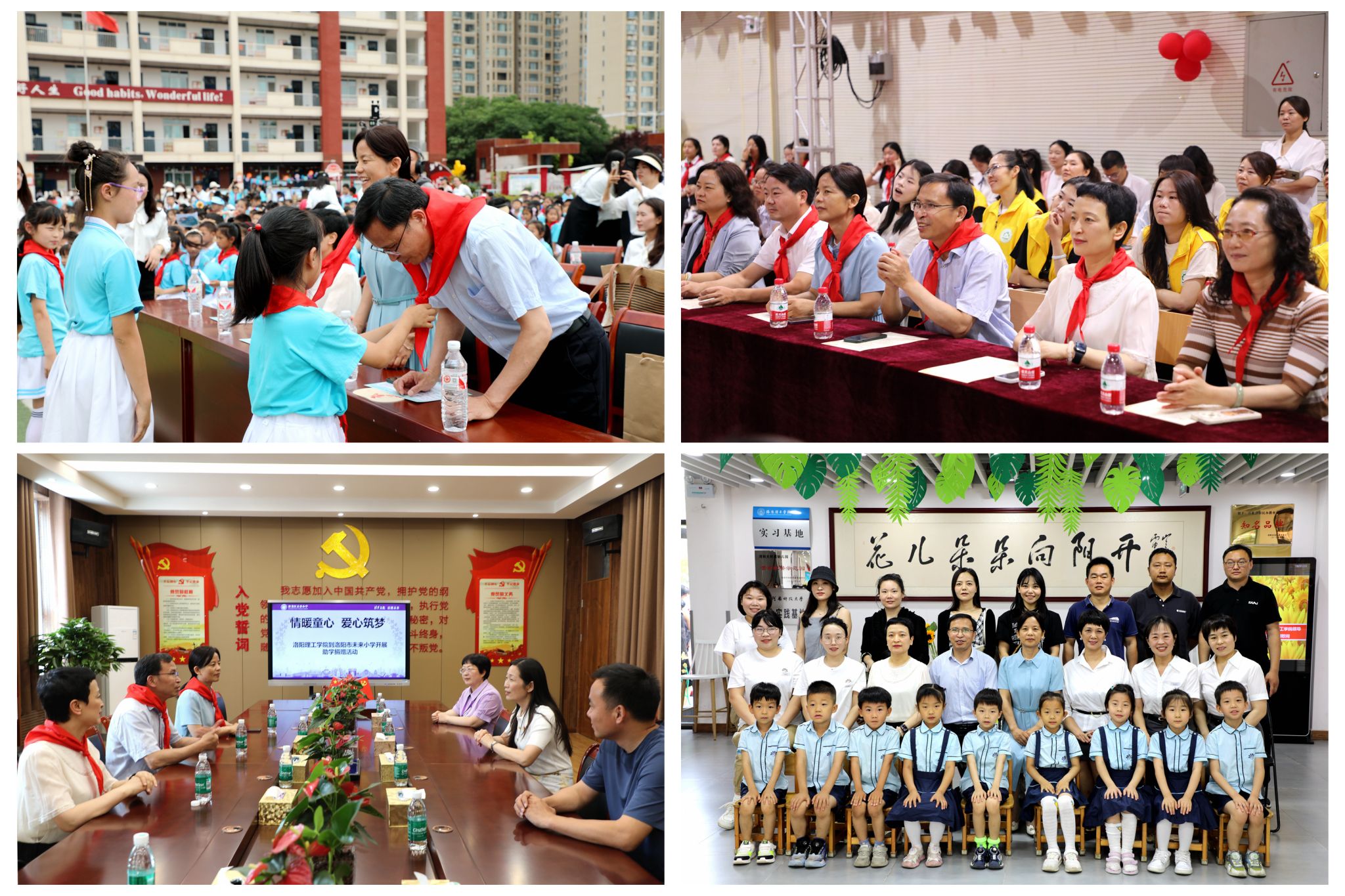 工会相关负责同志一行四人走进北京第二实验小学洛阳分校、洛龙区第一实验小学学府校区、向阳花幼教集团(科大园)和洛龙区启迪未来小学开展六一慰问活动,代表美高梅娱乐场