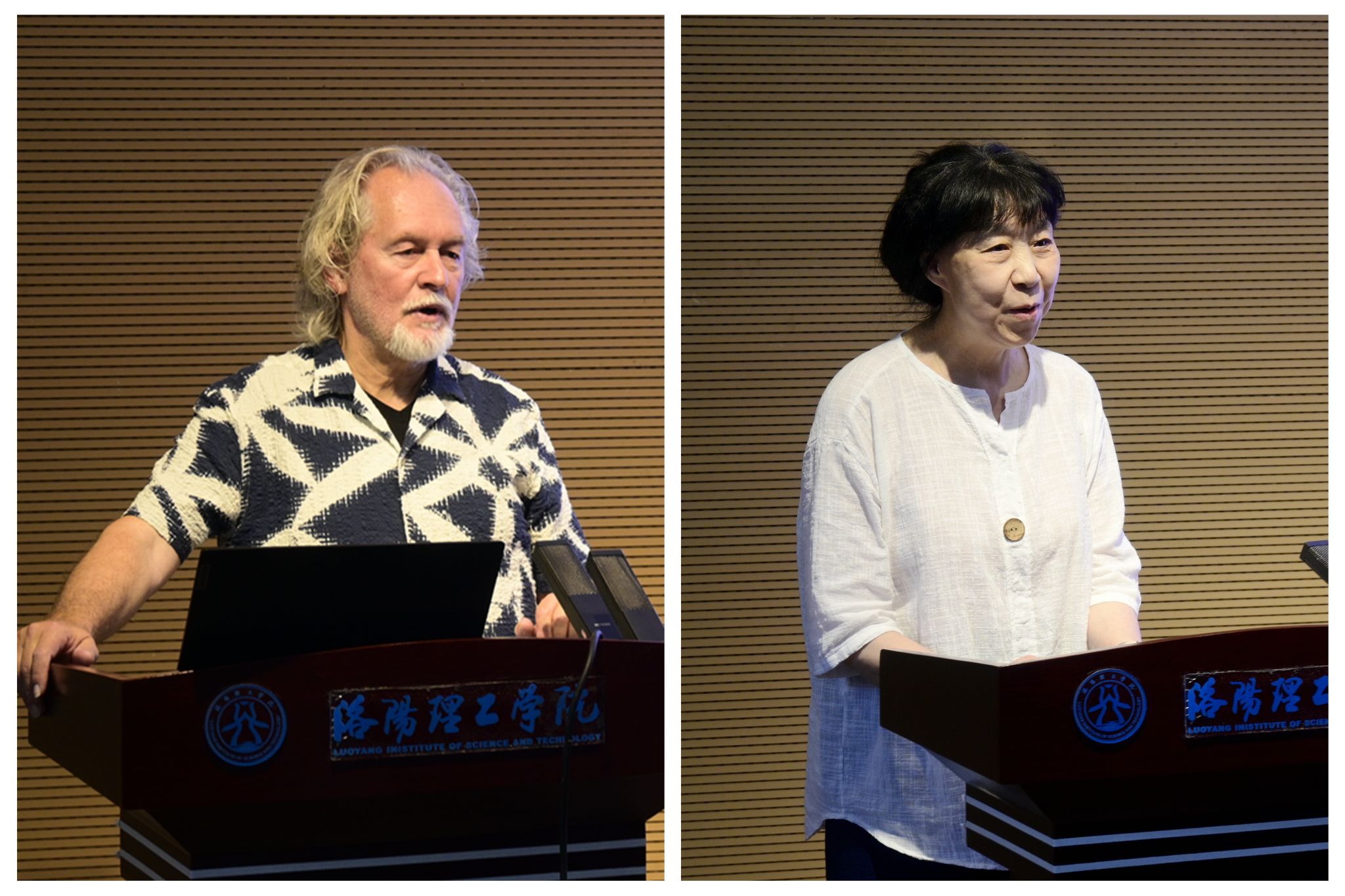比利时安德卫普皇家美术美高梅娱乐场 院长巴特(左)、国际著名雕塑家闫淑芬(右)分别作学术报告