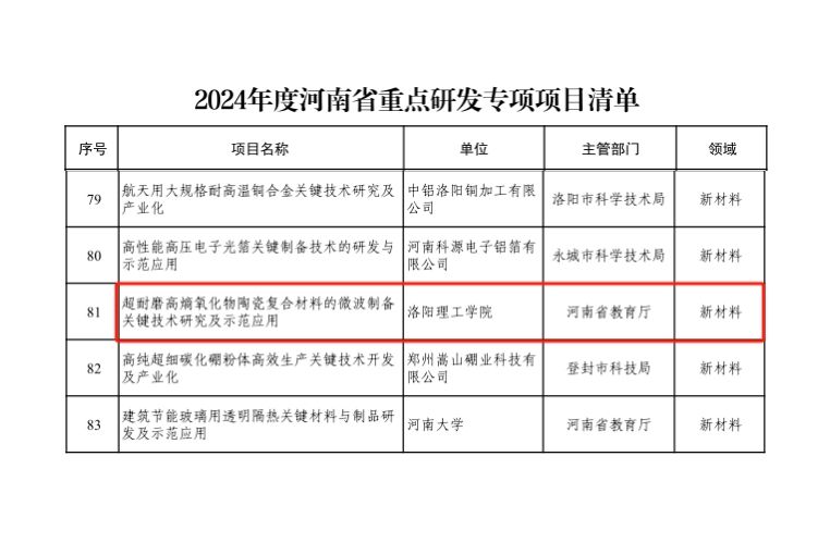 近日,河南省科学技术厅发布了《2024年度河南省重点研发专项拟立项公示》和《关于2024年度河南省重点研发专项项目任务书签订及后续管理事项的通知》,美高梅娱乐场