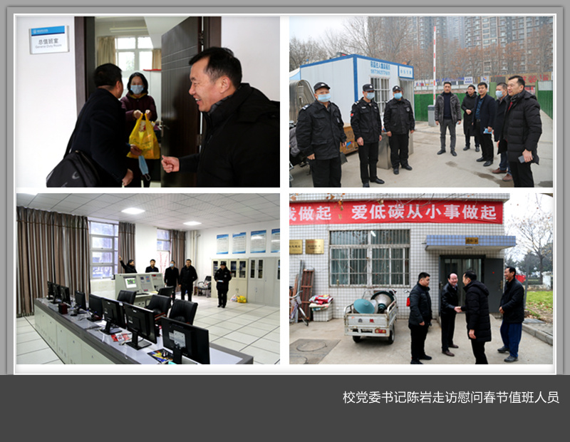 1月24日下午,农历大年三十,校党委书记陈岩一行走访慰问春节期间值班人员,向他们致以节日的问候和新春的祝福。校党政办、宣传部、保卫处、后勤管理处相关部门负责人参加慰问。