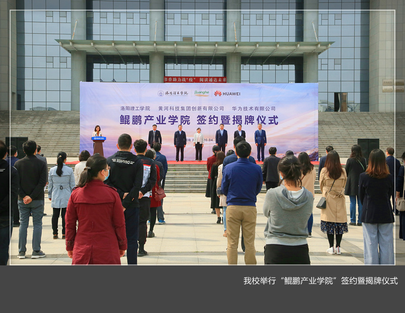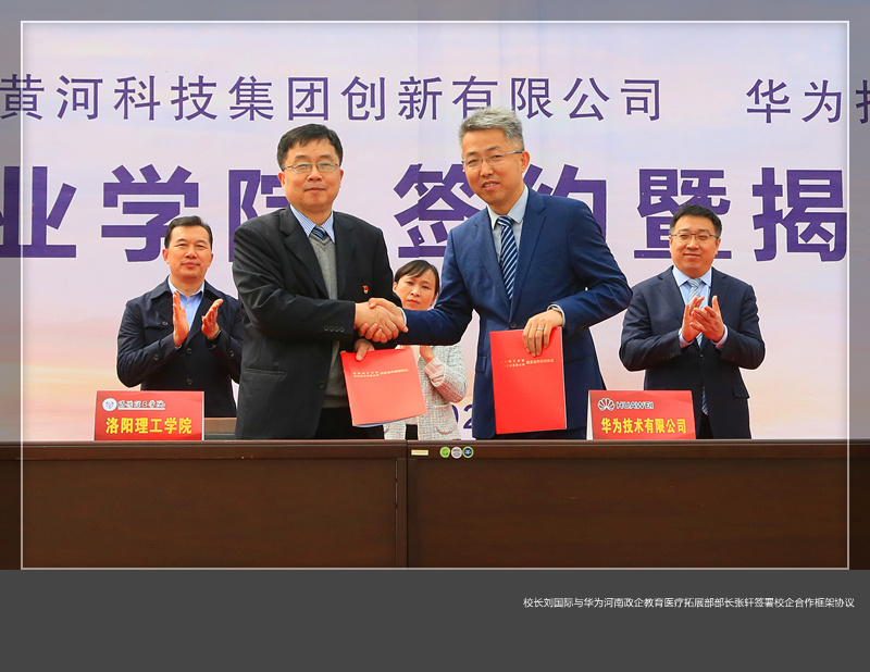 将以华为技术有限公司作为重要技术支撑,与华为技术有限公司、黄河科技集团创新有限公司在人才培养、应用技术研发、技术人员培训等方面开展合作,推进产教融合、校企合作、校企协同育人,提升内涵建设,为洛阳副中心城市建设提供强有力的人才支撑,为中原更加出彩做出新的更大的贡献。