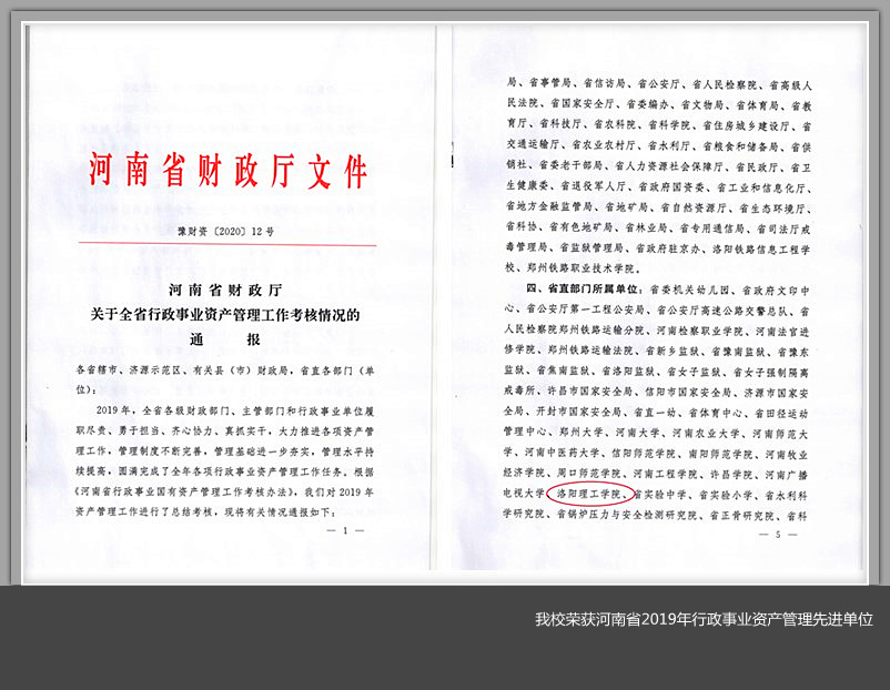 荣获河南省2019年行政事业资产管理先进单位。校国有资产管理处在校党委行政的正确领导下,在全校各单位的大力支持下,紧紧围绕美高梅娱乐场