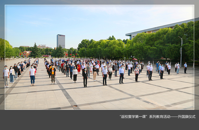 有关负责同志同首批返校复学学生一起参加了升国旗仪式。在激昂雄壮的国歌声中,大家肃立注目,目送鲜艳的五星红旗在洛阳理工校园冉冉升起、迎风飘扬。