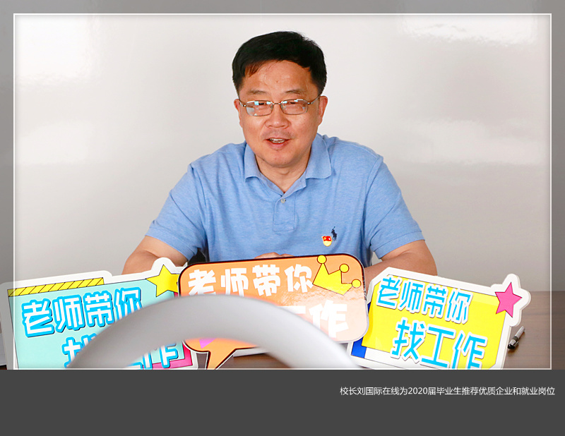 “老师带你找工作”抖音直播第一期上线,校长刘国际来到直播间,为2020届毕业生推荐优质企业和就业岗位。校党委副书记曾涛现场指导和组织首场直播活动。
