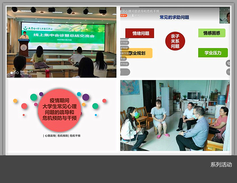 大学生心理健康教育中心的老师面向全校心理委员和学生骨干作了《疫情期间大学生常见心理问题的疏导和危机预防与干预》专题讲座,向心灵小天使们讲授了心理危机识别的线索与干预的基本流程,鼓励他们继续当好老师的小助手,共同维护同学们的身心健康和校园的安全稳定。中心还牵头开展关爱谈心帮扶活动,积极组建由心理中心教师、辅导员和专业教师等组成的工作团队,针对存在特殊困难的学生进行实地走访慰问学生家庭,并为学生送上精心准备的礼物,鼓励学生在家静心学习,同心抗疫情,乐学在家中。