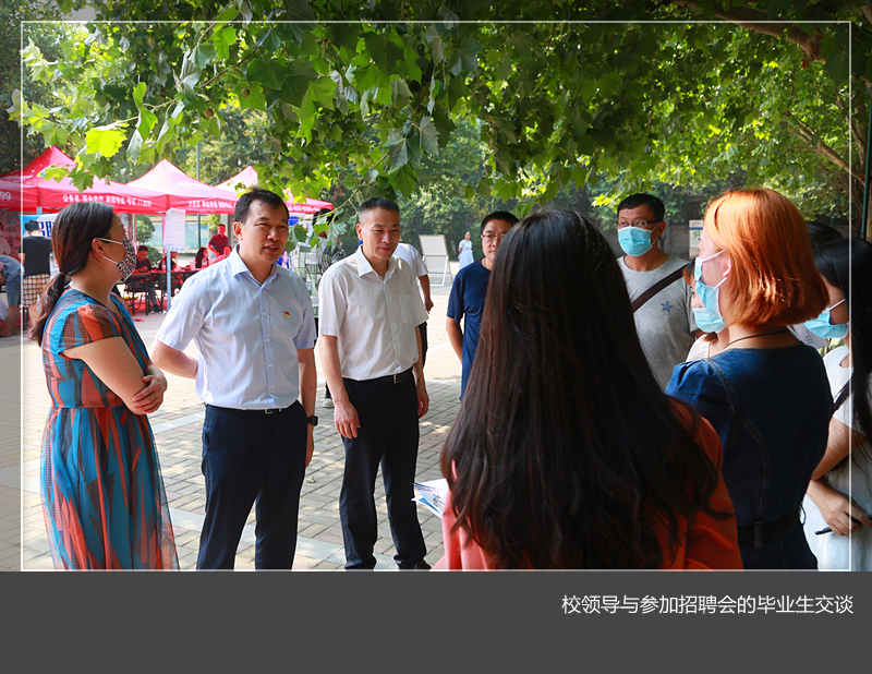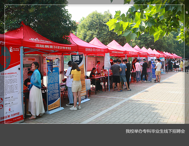 7月7日,美高梅娱乐场 在王城校区镜月广场举办专科毕业生线下招聘会。九点钟,前来参加招聘会的同学们有序的分批进入场地,与企业深入交流。参会的四十家单位中,河南六建战绩最佳,一小时内签了四位同学。校党委书记陈岩和校党委副书记曾涛视察现场,他们与多家企业交流,并亲切勉励同学们积极就业,果断签约。