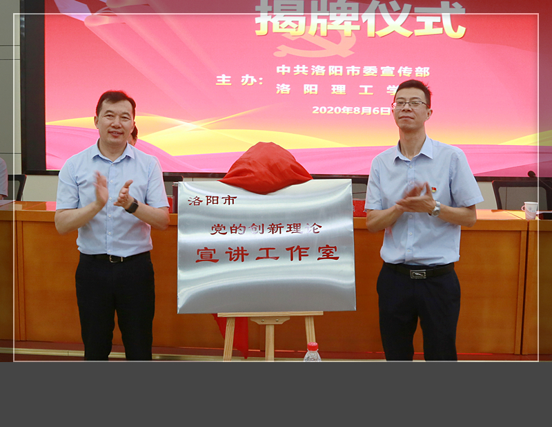 校党委书记陈岩、河南省委宣传部理论处处长杨小强为洛阳市“党的创新理论宣讲工作室”揭牌。