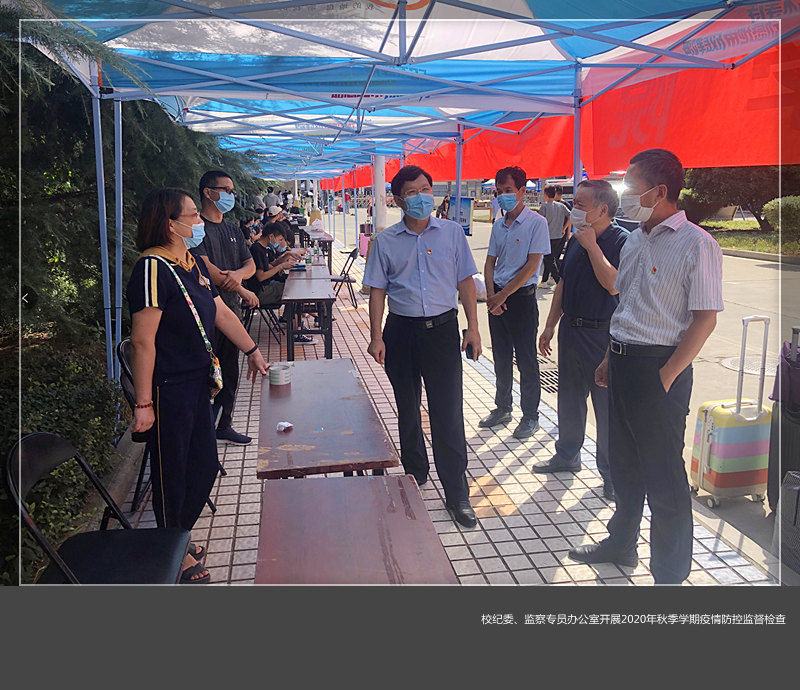 9月5日,校纪委书记、监察专员刘楠带领监督检查组深入新学期开学报到一线,对2020年秋季学期疫情防控情况开展监督检查。