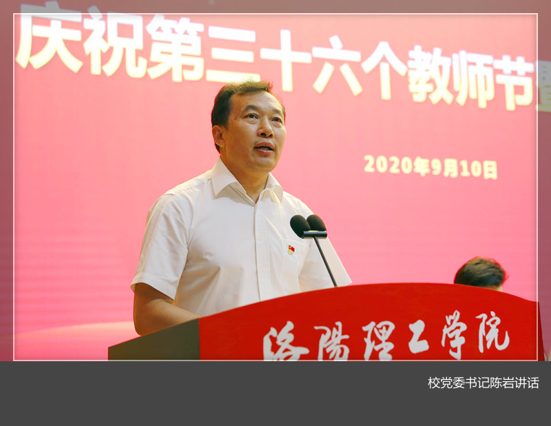 事业发展取得的成绩;高度评价了广大教师迎难而上、积极战“疫”、坚守“云”端,圆满完成各项教学任务、为抗击疫情斗争取得重大战略成果作出的重要贡献。陈岩结合“以德立身、做‘大先生’,以身示范、做‘引路人’”的主题,向全校教师提出四点要求和希望:一、做好老师,树牢远大理想信念是根本。二、做好老师,坚守高尚道德情操是前提。三、做好老师,具有扎实学识是基础。四、做好老师,拥有仁爱之心是关键。陈书记希望全体教职工以习近平新时代中国特色社会主义思想为指引,以“生命至上、举国同心、舍生忘死、珍重科学、命运与共”伟大的抗疫精神为动力,坚持立德树人,谱写高水平应用型大学建设的绚丽篇章。