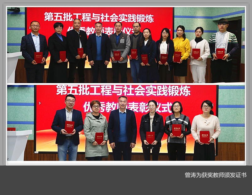 参加汇报的老师分别结合自身实践锻炼实际,从实践目的、实践任务、实践内容、校企合作、教科研成效、心得体会等方面进行了汇报。经评委评审,现场选出一等奖10名,二等奖5名并进行表彰,曾涛为获奖教师颁发了证书。