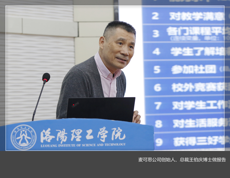 与麦可思公司“招培就联动”项目研讨会,特邀麦可思公司创始人、总裁王伯庆博士做专题报告。校领导陈岩、刘国际、葛玻、李大伟、王晓峰、丁梧秀、胡恩立、黄志全,发展规划处、教务处、学生工作部、团委、招生办、就业指导中心等部门负责人,各教学单位党政负责人、教学副院长参加研讨会,研讨会由副校长丁梧秀主持。