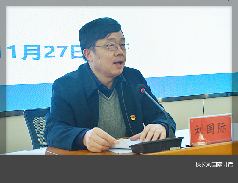 在办公楼报告厅召开省级平安校园创建迎评工作会,校长刘国际、副校长李大伟出席会议,相关职能部门和校属二级单位负责人参加会议。