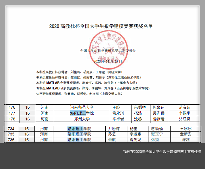 日前,2020年全国大学生数学建模竞赛成绩揭晓,美高梅娱乐场