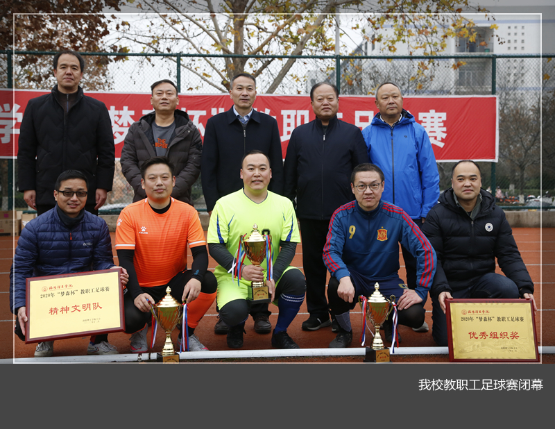 ‘梦森杯’教职工足球赛”于12月3日在王城校区足球场落下帷幕。校党委副书记、工会主席曾涛,河南梦森建筑工程服务有限公司总经理王子敬和校工会、体育部相关负责人出席闭幕式并为获奖运动员颁奖。