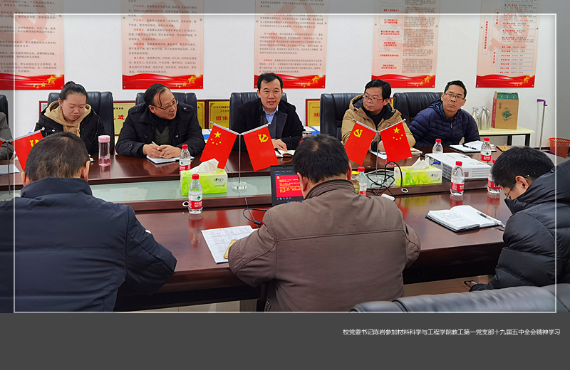 教工第一党支部在材料楼ES207党员教育室召开会议,专题学习贯彻党的十九届五中全会精神。校党委书记陈岩参加会议。
