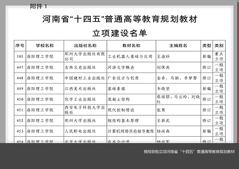 近日,河南省教育厅公布了《河南省“十四五”普通高等教育规划教材立项建设名单》(教高[2020]469号),美高梅娱乐场