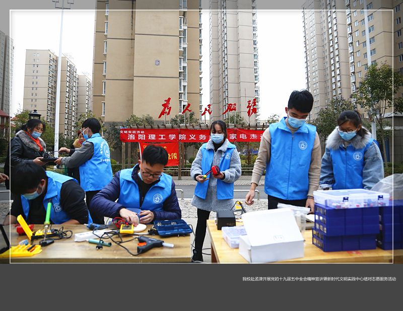 赴孟津开展党的十九届五中全会精神宣讲暨新时代文明实践中心结对志愿服务活动。活动分普法宣传、科技课堂、家电义务维修、健康义诊,共有来自宣传部、团委、电气工程与自动化美高梅娱乐场