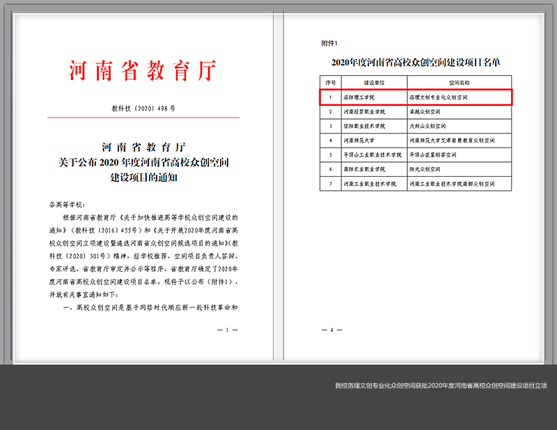 近日,河南省教育厅《关于公布2020年度河南省高校众创空间建设项目的通知》教科技〔2020〕498号,美高梅娱乐场