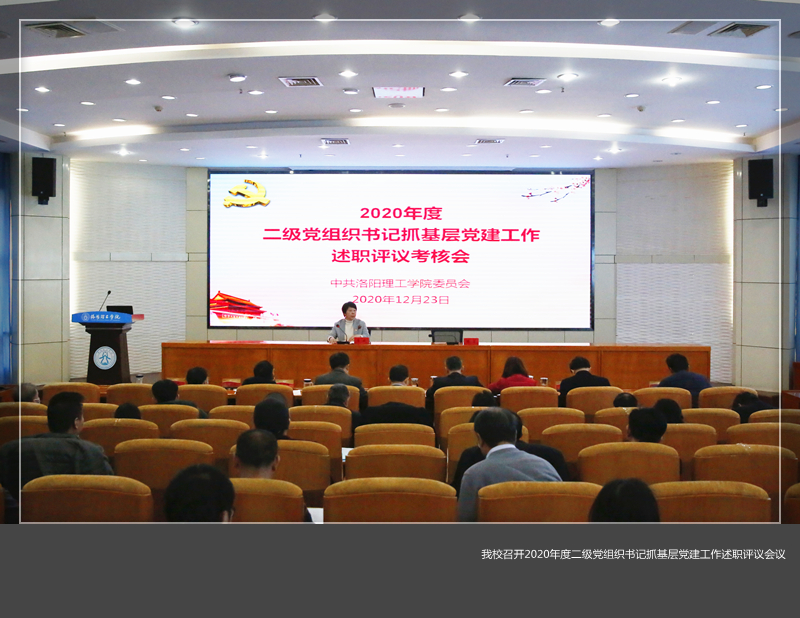 在王城校区办公楼二楼报告厅召开2020年度二级党组织书记抓基层党建工作述职评议会议。校党委委员、党群部门主要负责人、各二级党组织书记、“两代表一委员”、教职工党员代表和学生党员代表等参加了会议。会议由校党委副书记葛玻校主持,校党委书记陈岩作了总结讲话。