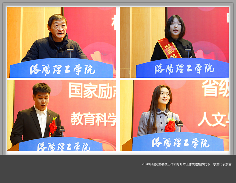 关于表彰2019/2020学年先进班集体和先进个人的决定》和《关于表彰“十佳优秀大学生”的决定》;校团委负责人宣读了《关于表彰2019/2020学年家庭经济困难学生“学习进步奖”获得者的决定》和荣获2020年学生考取硕士研究生和专科生考取本科工作先进集体名单;财务处负责人宣读了《关于表彰2019/2020学年国家奖学金、国家励志奖学金和美高梅娱乐场