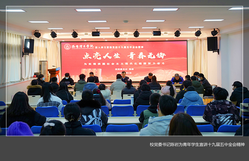 青年学生代表做十九届五中全会精神宣讲。党委学工部、团委负责人,校学生会学生干部代表、理论学习类社团 “马列读书会”成员代表、部分二级美高梅娱乐场