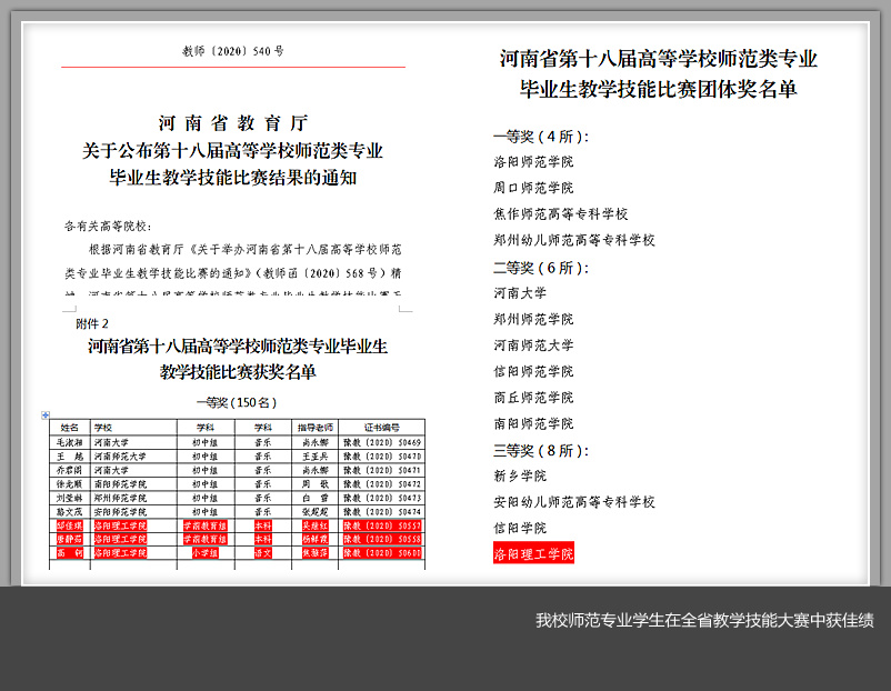 师范类专业毕业生教学技能比赛结果的通知》(教师〔2020〕540号),美高梅娱乐场