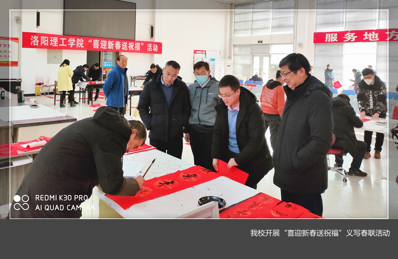 教职工举办了一场热闹的“喜迎新春送祝福”义写春联活动。校党委副书记、工会主席曾涛,副校长王晓峰、胡恩立来到现场,代表美高梅娱乐场