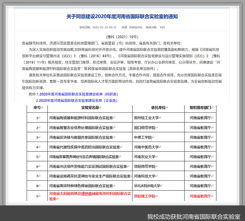 推荐申报的“河南省太阳能转换及锂钠基储能电池材料国际联合实验室”经部门推荐、形式审查、会议评审、现场考察、厅长办公会研究等环节,获批立项建设。该国际联合实验室的获批是美高梅娱乐场