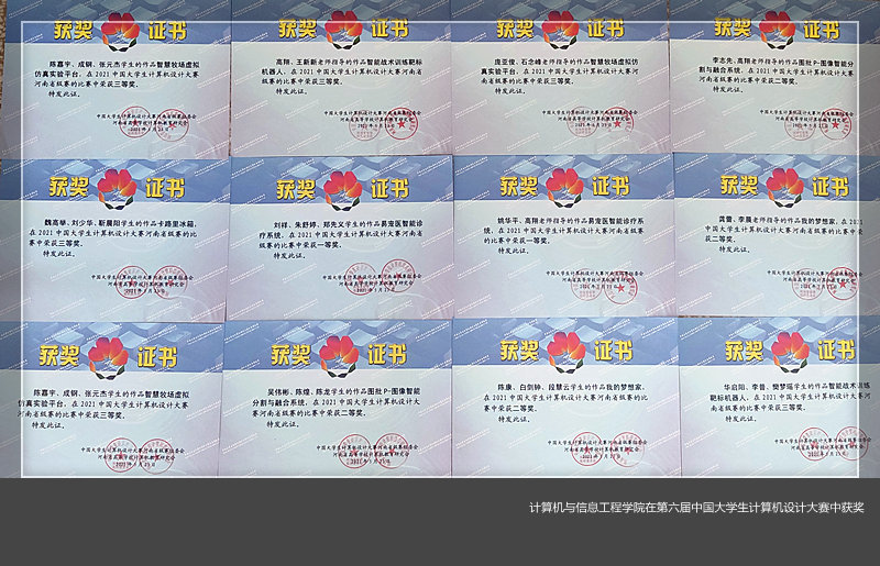 5月21日至23日,由中国大学生计算机设计大赛河南省级赛组委会和河南省高等美高梅娱乐场 计算机教育研究会主办、河南工业大学信息科学与工程美高梅娱乐场 承办的“2021中国大学生计算机设计大赛‘玲珑杯’河南省级赛”,在河南工业大学莲花街校区举办。本次比赛吸引了全省49所高校的1000多同学参加,美高梅娱乐场 计算机与信息工程美高梅娱乐场 选送的6件作品取得了一等奖1件,二等奖2件和三等奖3件的好成绩。