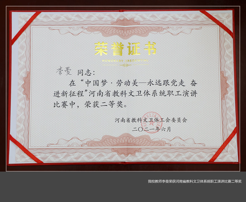 美高梅娱乐场 教师李曼荣获河南省教科文卫体系统​职工演讲比赛二等奖