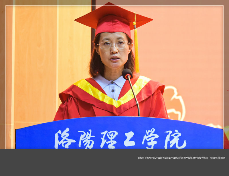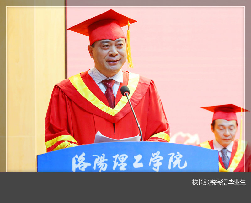 发展和学生大学成长历程。以一位师长和朋友的身份,与大家畅想未来的奋斗人生,对毕业生提出殷殷期望。一是要胸怀祖国,放眼天下。心有所信,梦有所依,方能行稳致远。青年生逢盛世,一定要与祖国同频共振,在祖国的臂膀上,放眼全球,争锋世界,将所学的知识内化于心、外化于行,自觉投身强国伟业,让青春在创新创造中闪光,让境界在实干兴邦中升华。二是要追求卓越,不断超越。“青年一代有理想、有本领、有担当,国家就有前途,民族就有希望。”要用“穷且益坚,不坠青云之志”的信念、“踏石留印、抓铁有痕”的劲头、“涓滴成流、聚沙成塔”的韧性,用求真务实的态度、科学思辨的方法、清醒睿智的头脑,释放激情、追逐梦想、追求卓越,辨别真伪、区分是非、求索真理。三、要学会感恩,承担责任。青年以感恩的方式看待社会、对待他人,要常怀一颗感恩的心面对社会、面对朋友、面对同事,即使在困境中也要发现生活的美好,更要承担社会责任。希望大家“矢志追求更有高度、更有境界、更有品位的人生”,在火热的青春中放飞人生梦想,在奋斗的青春中成就事业华章,塑造大格局,锤炼大心胸,成就大作为。期望毕业生牢记嘱托,牢记期盼,牢记梦想,在祖国“两个一百年”的奋斗征程中,不惧风雨、奋勇拼搏、一往无前,镌刻出新时代洛理人一个个的奉献印迹!