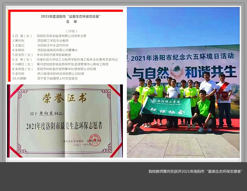 教师黄向东被授予“最美生态环保志愿者”荣誉称号。