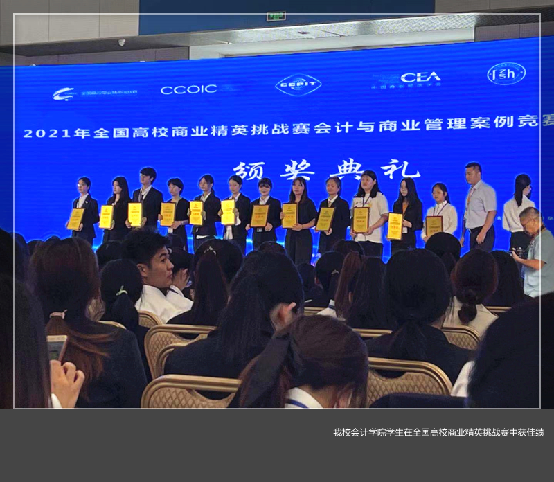 近日,由中国国际贸易促进委员会商业行业委员会、中国国际商会商业行业商会、中国商业会计学会和中国商业经济学会共同主办的2021年全国高校商业精英挑战赛会计与商业管理案例竞赛全国总决赛在天津梅江会展中心举行。来自全国20个直辖市、省和自治区的64所高校的165支参赛队伍参加了比赛角逐。