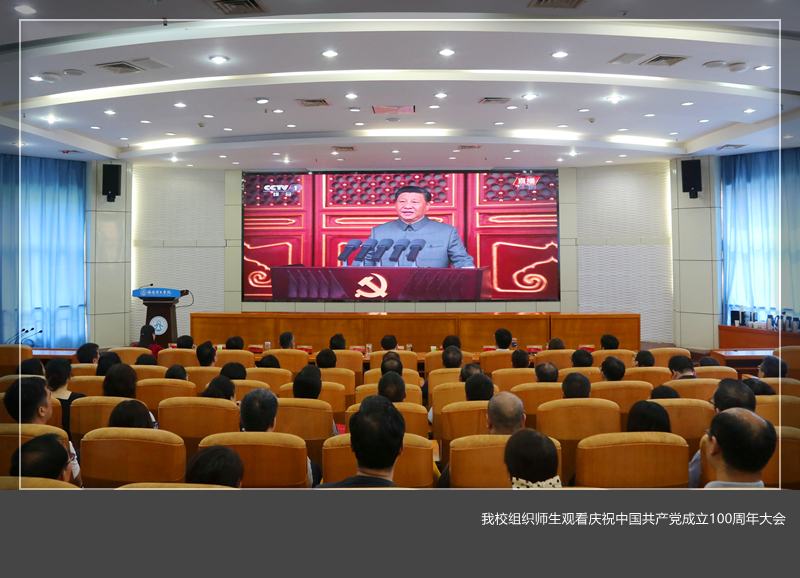 全体校领导和近2万名师生以不同形式分26个会场收听收看了庆祝中国共产党成立100周年大会直播。