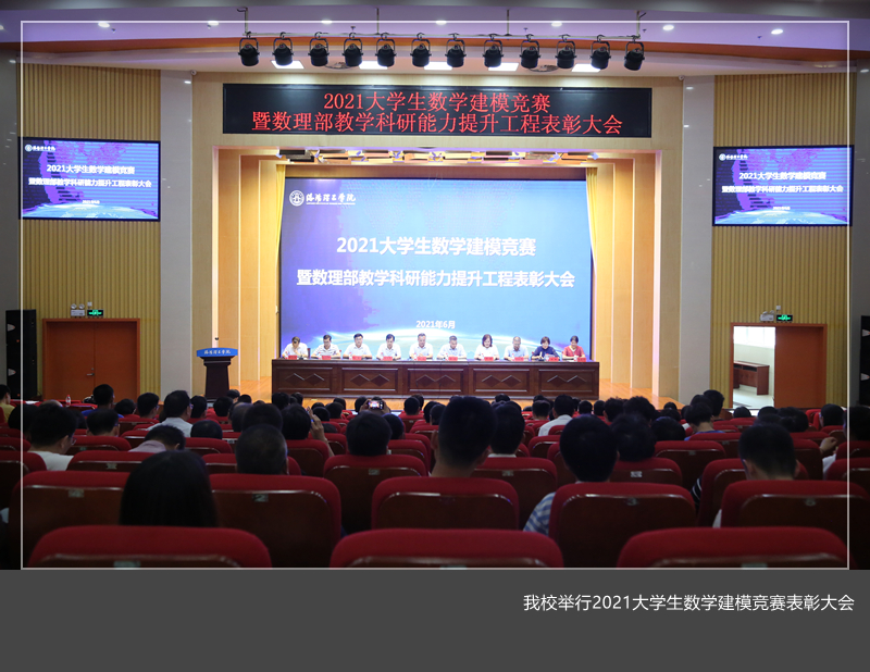 2021大学生数学建模竞赛暨数学与物理教学部教学科研能力提升工程表彰大会在王城校区图书信息中心报告厅举行。校领导张锐、曾涛出席,宣传部、教务处、财务处、校团委、信息化技术中心、数学与物理教学部等部门负责人以及数学建模竞赛获奖学生代表300余人参加大会。