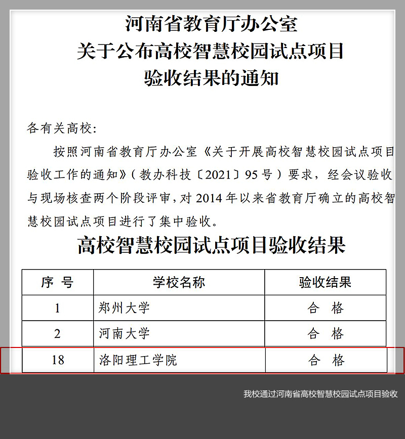 智慧校园试点项目通过验收,是河南省教育厅对美高梅娱乐场